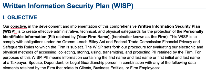 Download a Word document version of the IRS’s Written Information Security Plan template.